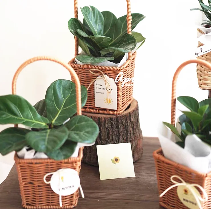 Оптовая продажа корзина из ротанга Тканые вручную цветочные поделки пластиковые корзины с длинной ручкой 264,10 ₽ - 294,91 ₽