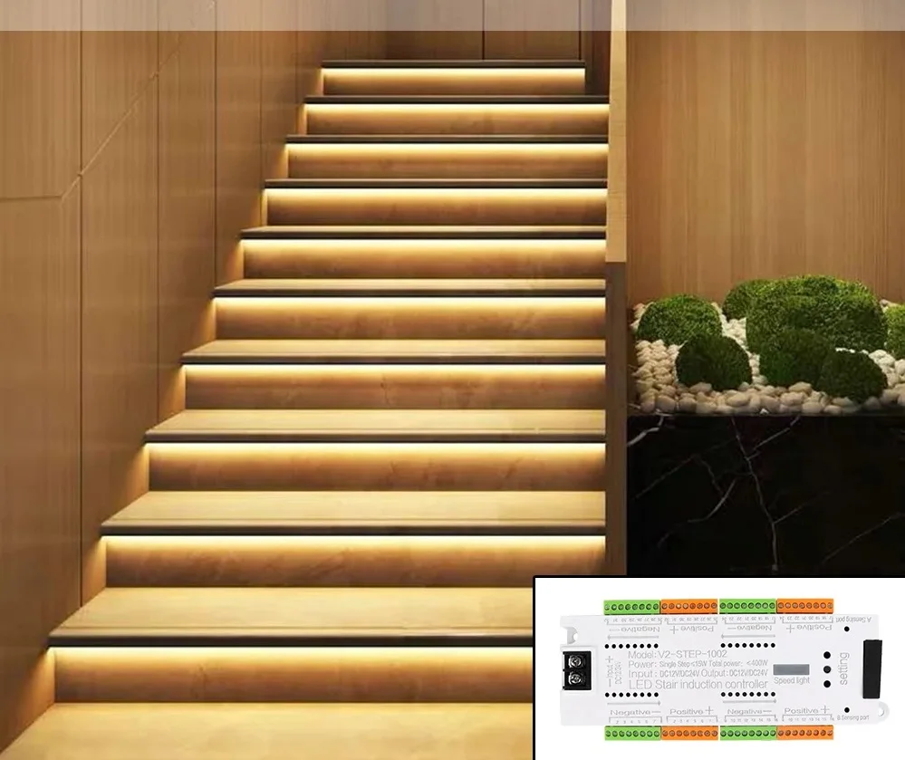 V2-STEP-1002 DC12V/24V 400W 32-ступенчатый контроллер датчика движения лестницы для светодиодных полос освещения