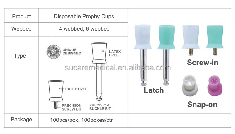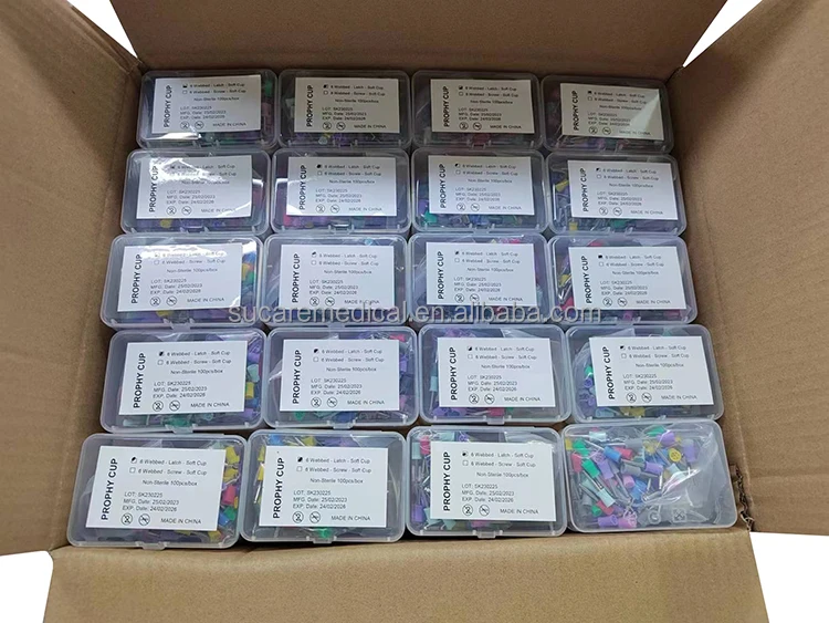 Prophy Cups | Silicone Cup Brass Shank | 4 Webbed - Latch | 100 or 144pcs/box, 100boxes/carton 38x32x20cm |