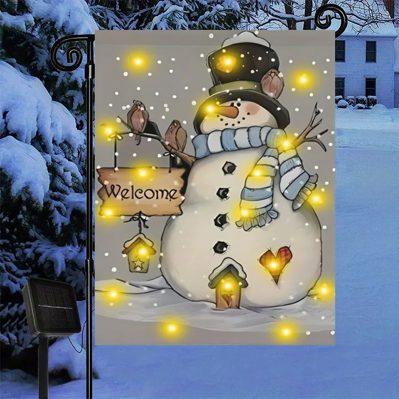 Снеговик Садовый флаг со светодиодной подсветкой-двухсторонний 12x18 дюймов-идеально подходит для рождественского и зимнего декора на открытом воздухе двора патио газона