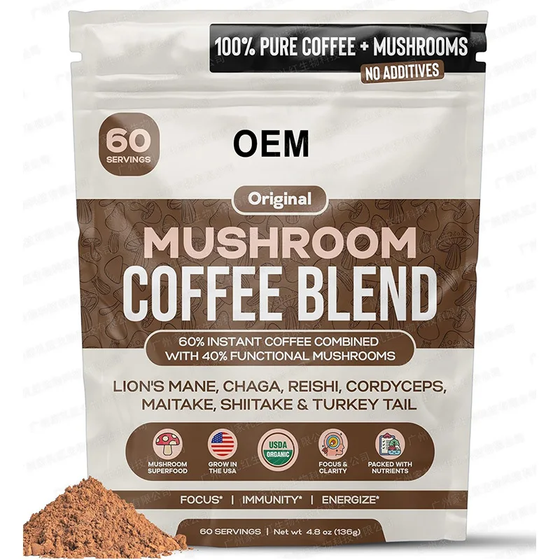 OEM, частная торговая марка, без сахара, Reishi Lions, грива 4 в 1, растворимый грибной кофе