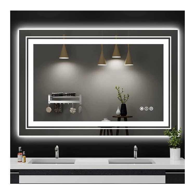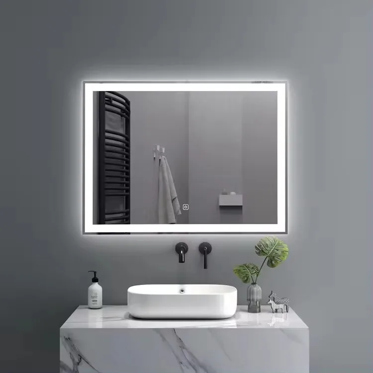 Современный дизайн высокое качество водонепроницаемый умное зеркало прямоугольный туалетный столик для ванной комнаты с алюминиевыми линзами свет заводская цена