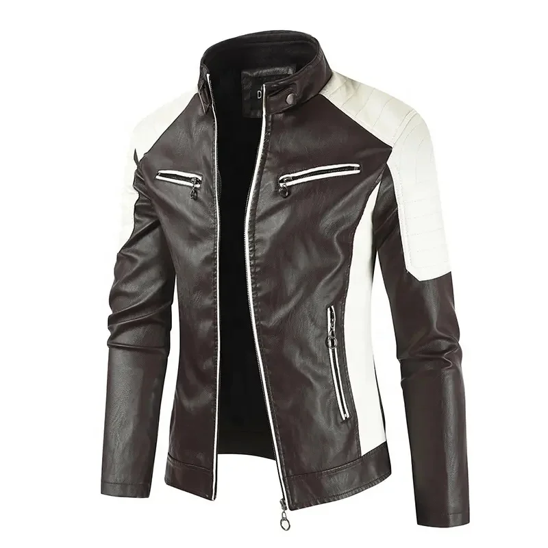 Дешевая модная мужская зимняя куртка Lederjacke толстая кожаная байкерская на подкладке молнии спереди с пуговицами и карманами Куртка 3 289,46 ₽ - 4 934,18 ₽