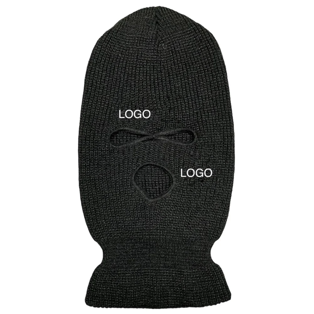 Балаклава с вышитым логотипом на заказ, мотоциклетная с 3 отверстиями, Полнолицевая вязаная Лыжная шапочка, Балаклава, шапка, лыжная маска