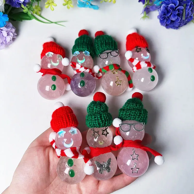 Оптовая продажа Хрустальный лечебный камень снеговик натуральный розовый кварц прозрачный кварцевый хрустальный шар ремесло для Хэллоуина подарок 693,26 ₽ - 715,26 ₽