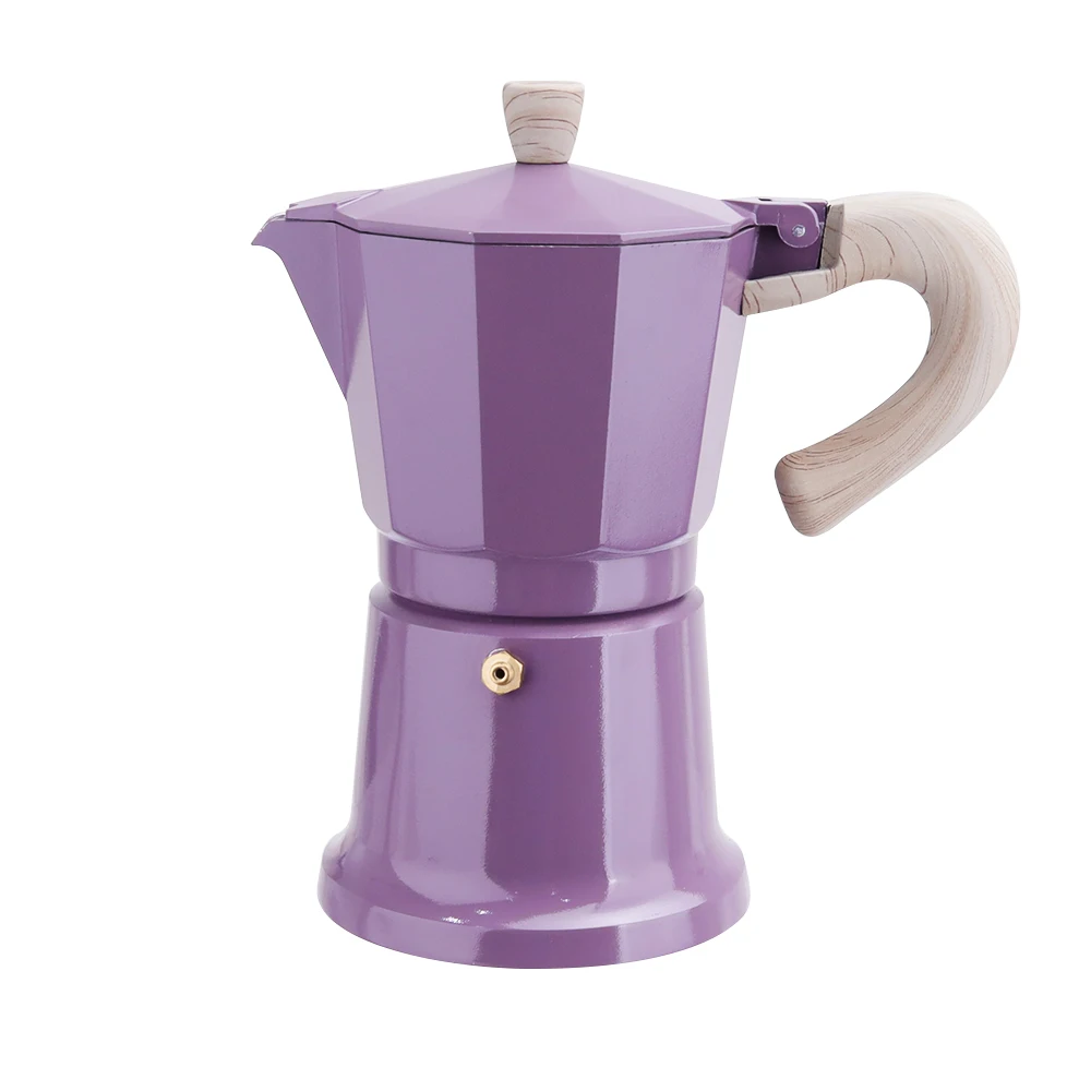 Высокомодные фиолетовые цветные покрытия с деревянной ручкой алюминиевые принадлежности для кофе чая эспрессо Кофеварка