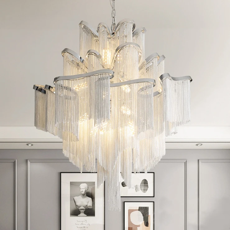 Лидер продаж Роскошная Современная индивидуальная вилла алюминиевая кисточка инженерный проект цепочка люстра Подвесная лампа