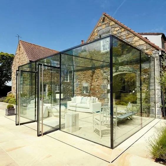 Современный открытый сад солярий с закаленным стеклом алюминиевая рама плоская крыша для солнечного солнца небольшой крошечный дом чувствовать себя