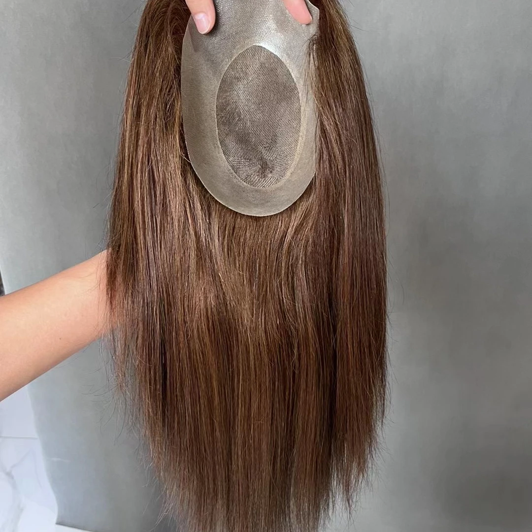 Оптовая продажа, 18 дюймов, прямые цвета пианино, 6x9 дюймов, 100%, человеческие необработанные волосы, система замены, полиуретан с кружевной монофоновой основой, Топпер для женщин