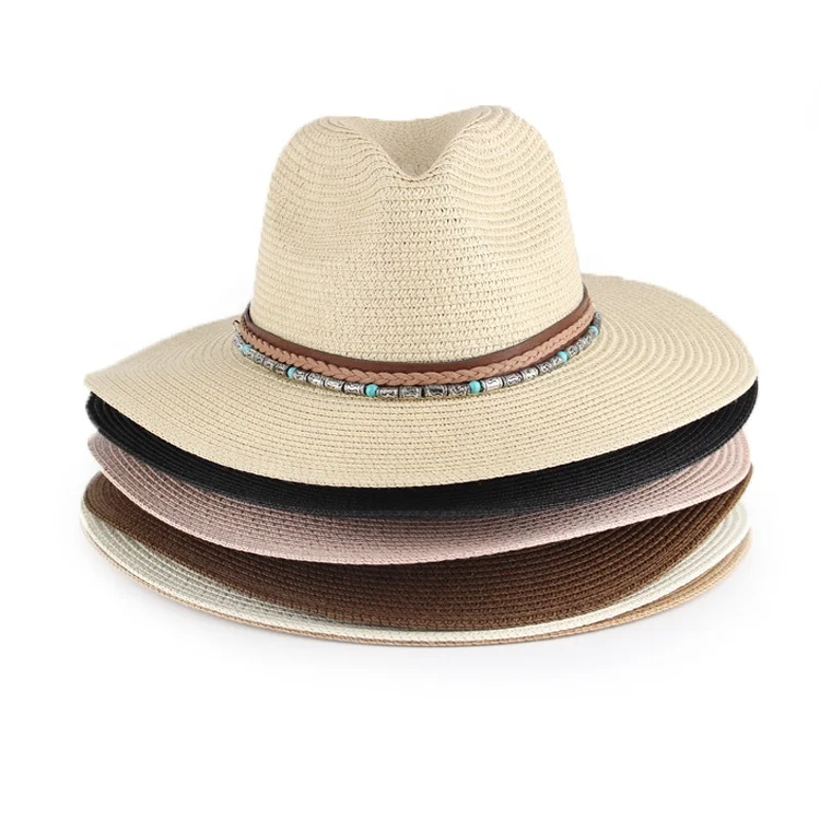 Оптовая продажа 2023 Соломенная Панама из бумаги летняя Солнцезащитная туристическая пляжная плетеная ковбойская шляпа для отдыха 171,06 ₽ - 312,50 ₽