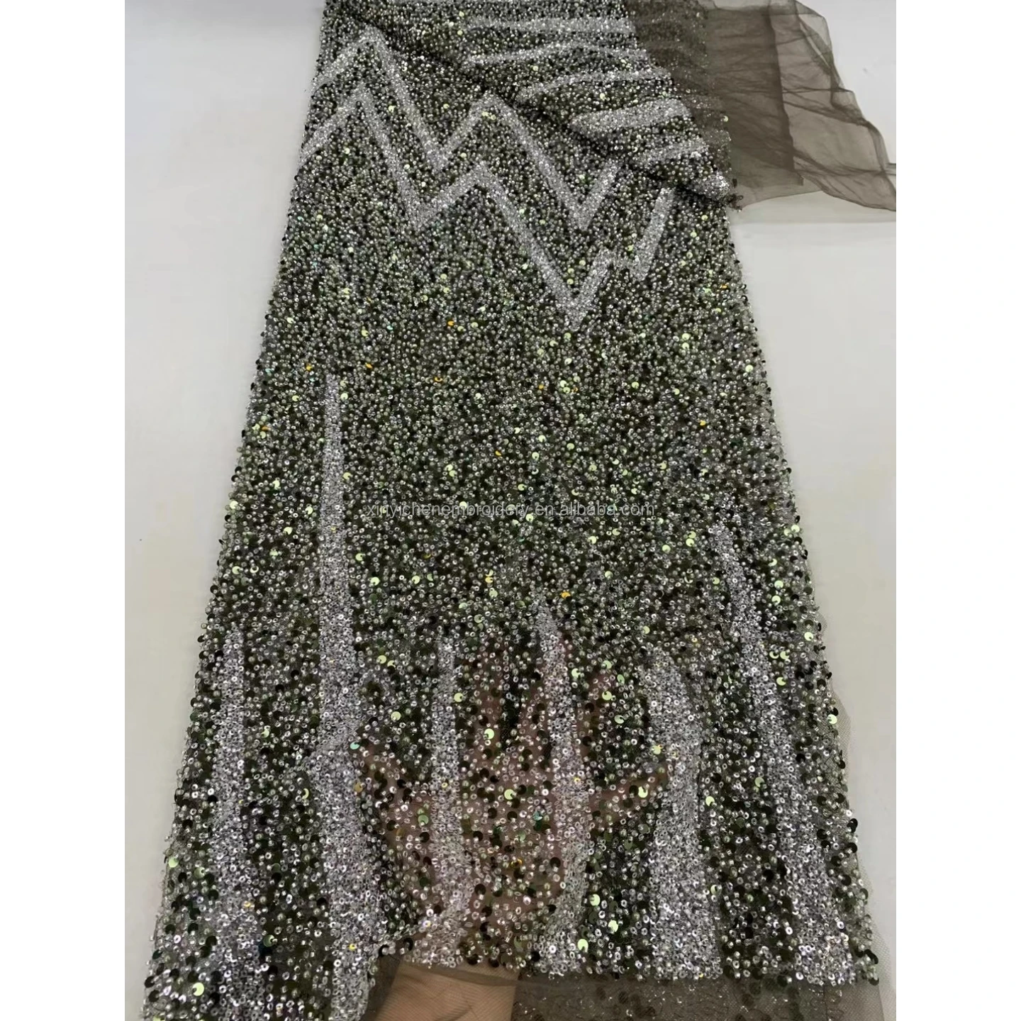 Оптовая продажа, сетчатая кружевная ткань с вышивкой, 2024, Новое поступление, хорошая цена, вышивка бисером, Роскошная ткань для свадебного вечернего платья