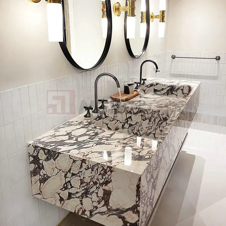 Дизайнерская ванная комната современный дизайн Роскошная мраморная ванная комната тщеславие calaccata мраморная двойная раковина