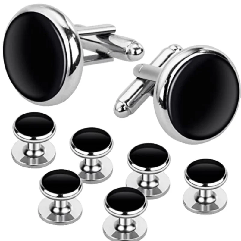 Запонки и шпильки мужские под смокинг, Роскошные Металлические запонки в подарочной коробке, набор из 8 шт.