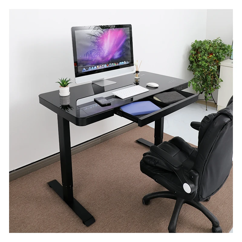 Стеклянный компьютерный стол E4A с беспроводной зарядкой умная подставка для сидения выдвижным ящиком USB Type-C электрическая регулируемая высота настольная рама