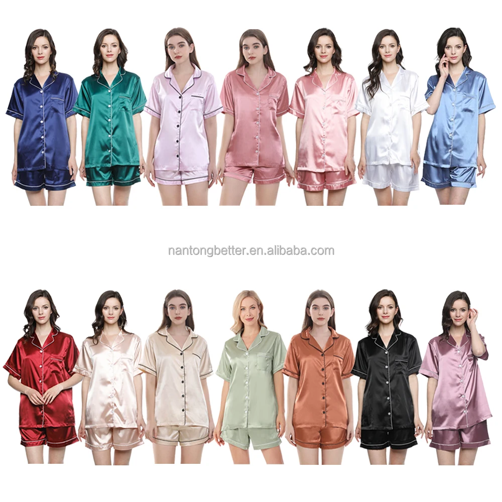 Удобные мягкие пижамы большого размера оптовая продажа роскошная шелковая женская пижама с коротким рукавом комплект атласной одежда для сна шорты