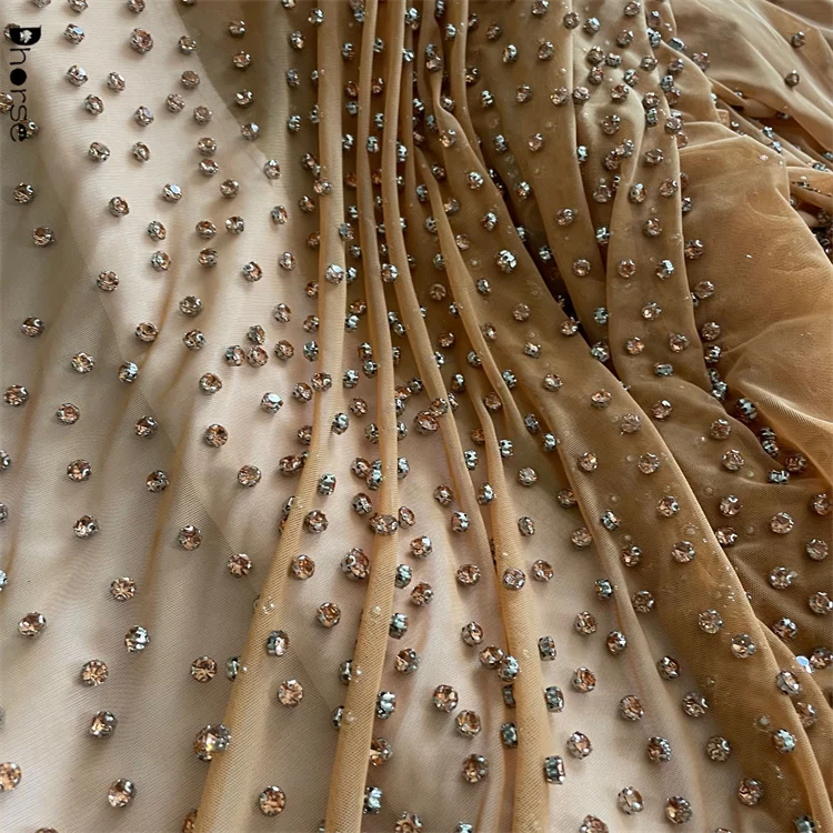 Роскошная блестящая ткань со стразами цвета шампанского на заказ эластичный сетчатый тюль 4 172,26-4 529,88 ₽