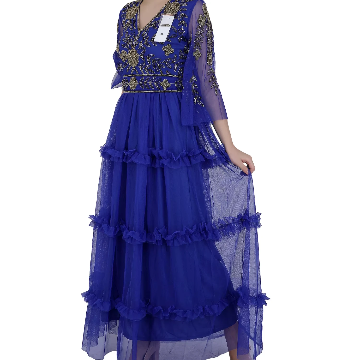 2025 расшитое вручную бисером вечернее платье с длинными рукавами с расклешенным рукавом коктейльное платье для свадебного дня рождения вечернее Золотое Платье для работы для женщин бальное платье