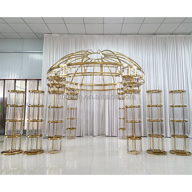 Фабрика FURUN новейшая Роскошная металлическая рама навес Золотая АРКА подставка для свадебных мероприятий