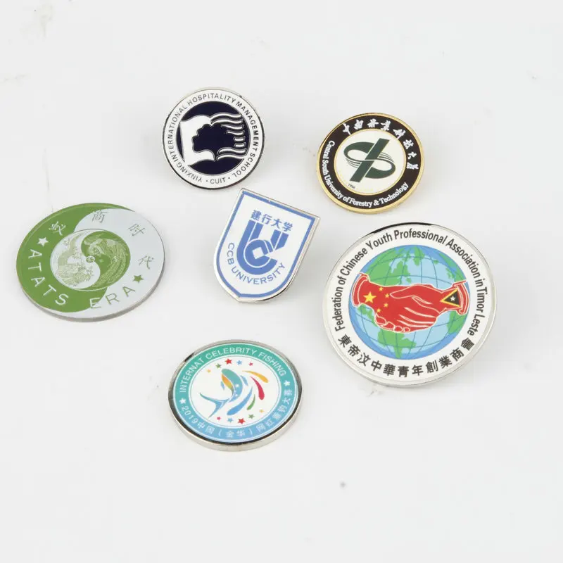 Заводская настраиваемая металлическая нагрудная булавка с уф-офсетной шелкографией