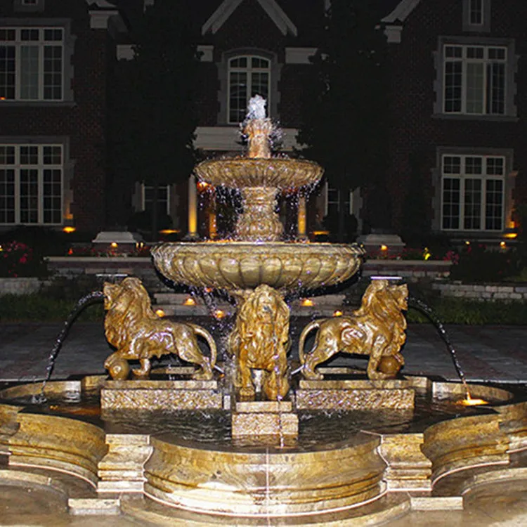 Material | Large antique outdoor garden decoration bronze fountain with lady statues and lion head bronze fountain |