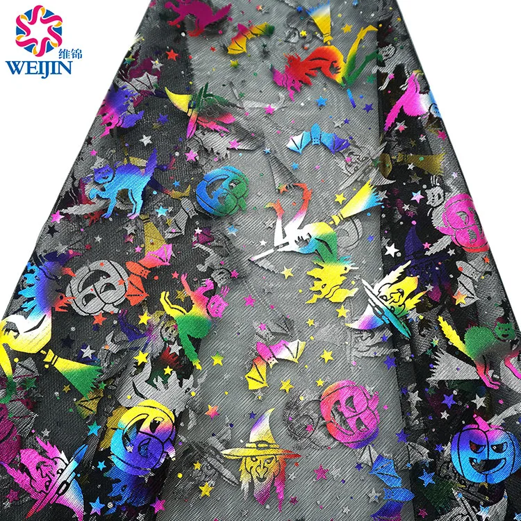 100% из полиэфирного волокна, мягкая шифоновая кружевная ткань для Хэллоуина, горячая штамповка, блестящая сетчатая ткань для Хэллоуина, декоративная юбка