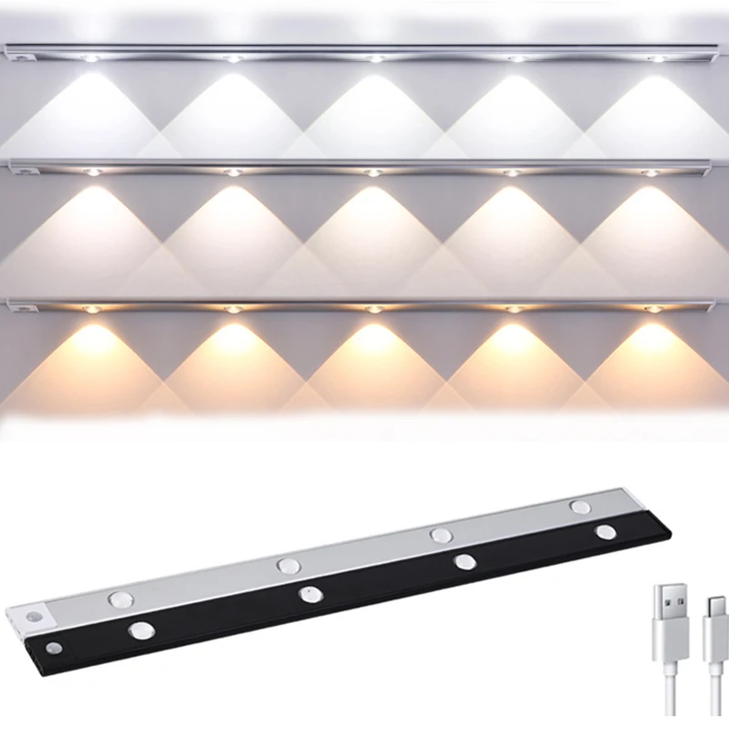 Перезаряжаемая беспроводная аккумуляторная батарея, алюминиевые светильники для шкафа, автоматический магнитный датчик движения, освещение для кухни