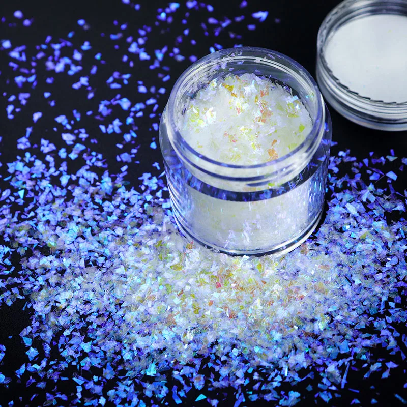 A:Our main products are Pearlescent pigments, Magic mirror powder, Laser magic mirror pigment, Diamond effect pearlescent pigments, Chameleon pearlescent pigments, magnetic Pearl powder, Crystal effect pigment, Aluminum foil, Glitter powder, glow in the dark powder, Fluorescent pigments, Thermochromic pigments and so on. The product shapes have hexagon, rounded, moon, stars, irregular shape, hearted-shaped and other new shapes.