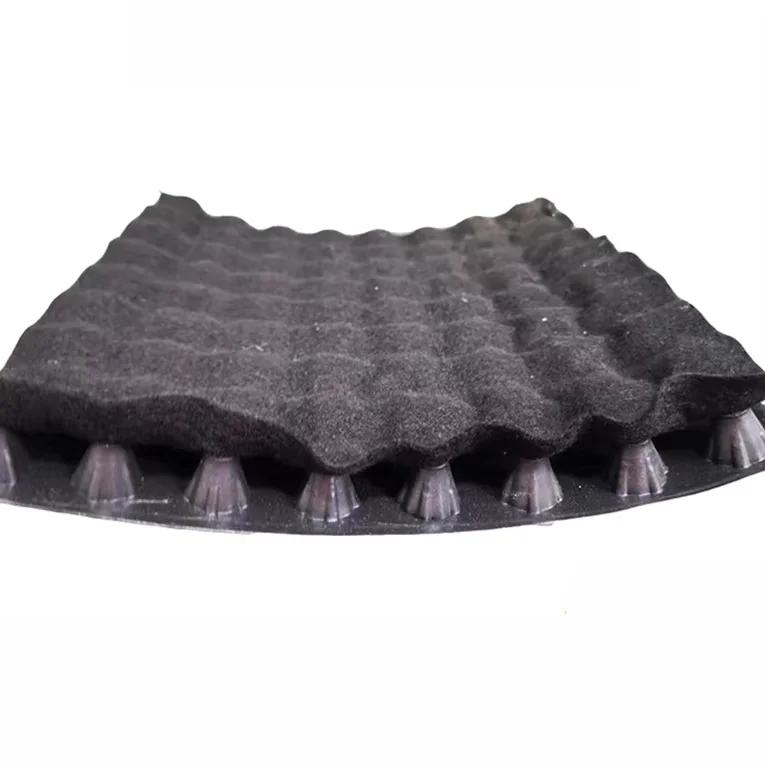 2.The drainage board should be laid along the edge of the top plate along the slope, with a uniform laying direction. The edges of the drainage board should be overlapped by 2-4cm and welded together. The drainage board should be covered with a layer of geotextile, and the geotextile should be covered with another layer of geotextile. The geotextile should overlap with the edge of the geotextile by 10cm to prevent soil from flowing into the gaps of the drainage board and maintain smooth drainage. | ||