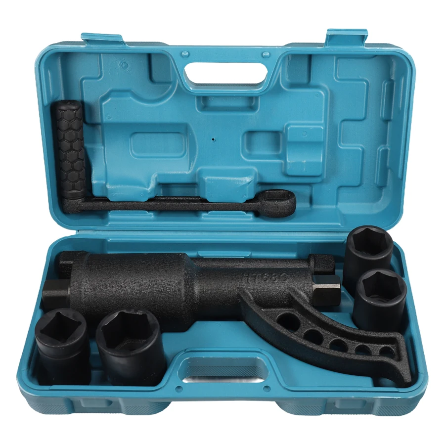 Detail | 1pc 1" labor saving wrench, 40cr material,33cm length, powder painting, galvanized knob, 1pc jointed arm with plastic handle, 2pcs 1" Crv sockets, black finish: 32mm,33mm 1pc 1" extension bar |