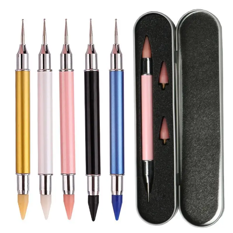 Частная этикетка 2 боковых ручка двухсторонний инструмент для нейл-арта обувь с украшением в виде кристаллов Стразы бусины карандаш шпильки нажмите с силой так воска-инструмент для выбора ручка