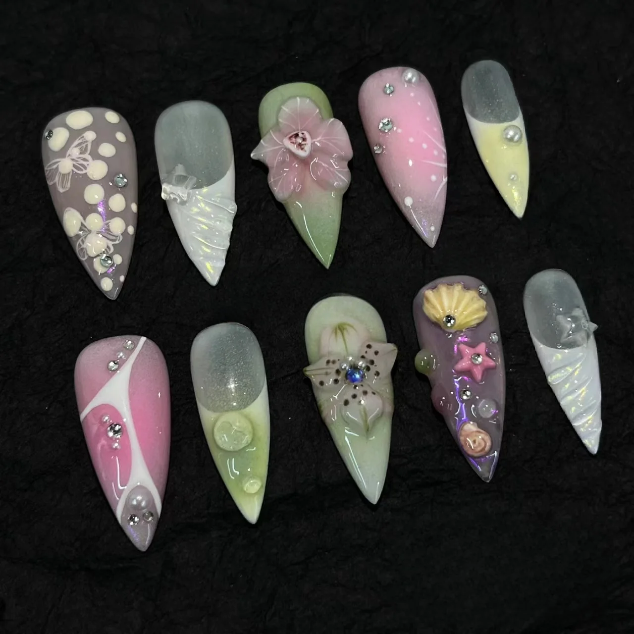 Прижимные ногти ABS маленькая свежая вода с принтом популярные 24 шт. фабричные точки оптом