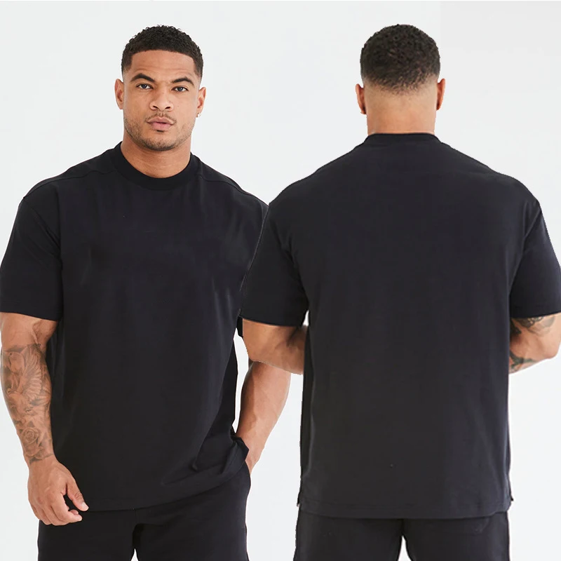 Мужская хлопковая эластичная футболка с коротким рукавом и принтом однотонная 100% для тренировок бодибилдинга 823,19-826,73 ₽