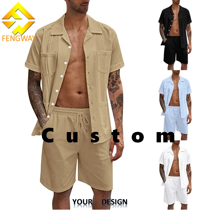 Fengway на заказ льняной повседневный костюм летняя мужская одежда кардиган рубашка и шорты Комплект