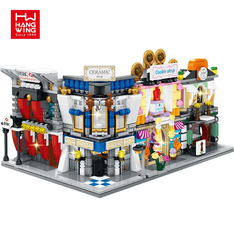 Город углу в виде улиц строительные блоки со светодиодными огнями детям собирать игрушки
