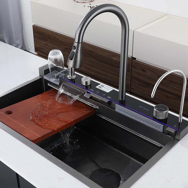 Роскошный с защитой от царапин светодиодный цифровой дисплей водопад кухонная раковина чашками и дозатор мыла