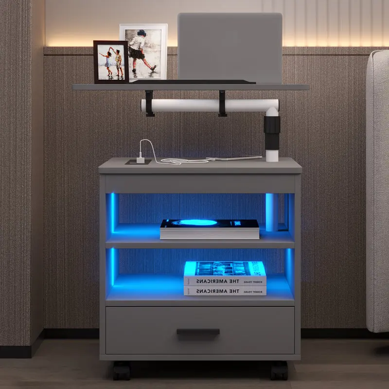 Kainice серая тумбочка Регулируемая поворотная Ночная подставка для спальни светодиодная с зарядной станцией
