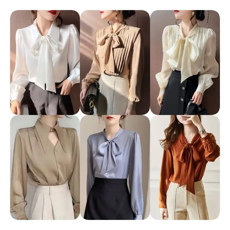 Элегантные женские атласные блузки рубашки дизайнерские шифоновые новые топы модная Офисная Женская одежда для работы 8382