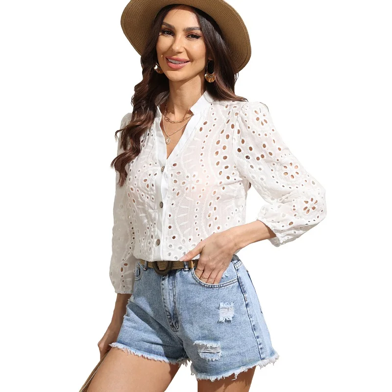 Модные милые кружевные офисные женские блузки рубашки элегантные для женщин