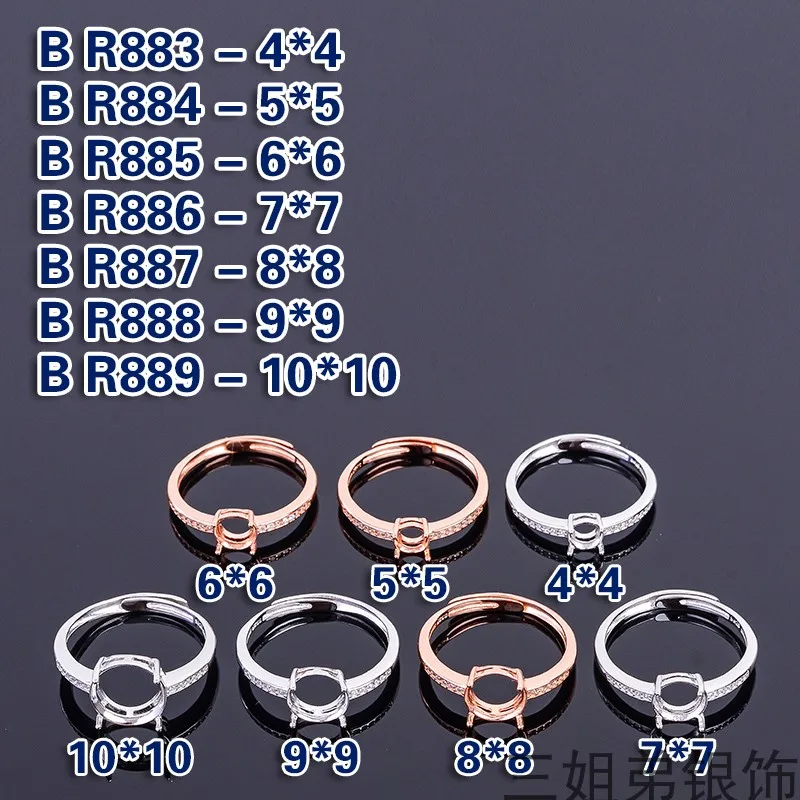 Полумонтажные Регулируемые кольца S925 стерлингового серебра 6 мм круглые блестящие огранки различных размеров драгоценных камней инкрустация ювелирные изделия для женщин