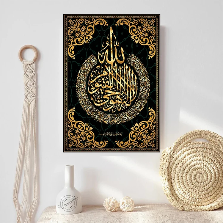 Современный домашний декор на заказ большая Исламская настенная рамка Коран религиозные стихи Черное золото Хрустальная живопись арабская каллиграфия синий