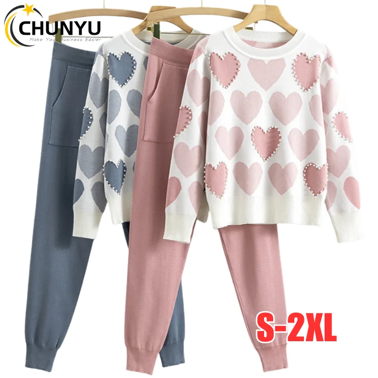 Женский милый пуловер с бисером свитер брюки со шнурком комплект из двух предметов трикотажные костюм 1 030,58-1 170,85 ₽