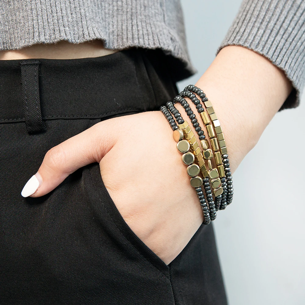 Оптовая продажа Магнитный гематит черный оникс Браслеты белый бирюзовый ручной 8 мм бисером магнит ювелирный браслет 49,69 ₽ - 58,52 ₽