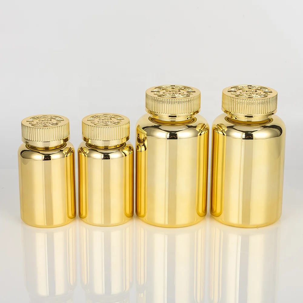 Высококачественная пластиковая бутылочка для таблеток 100cc, бутылочка с витамином, Золотая капсула с золотым винтовым колпачком