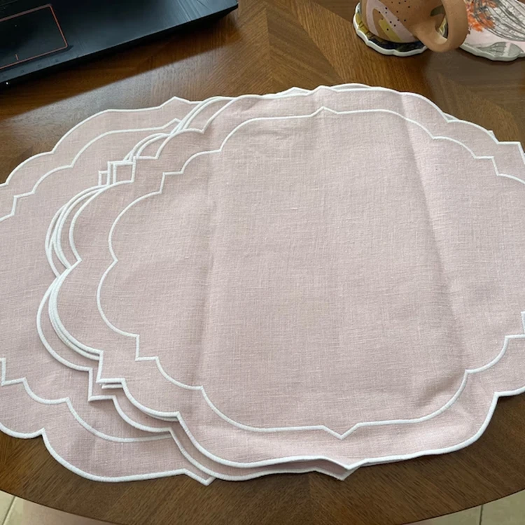 Роскошные вышитые волнистые края Свадебные зубчатые льняные салфеты под заказ для украшения столов