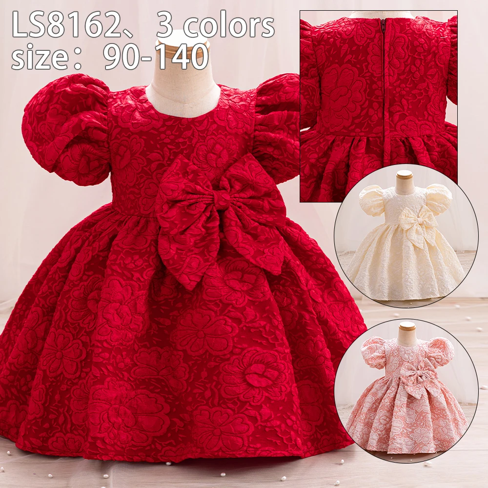 Платье для девочек с цветочным принтом из чистого хлопка, плотное Кованое платье принцессы с большим бантом на день рождения