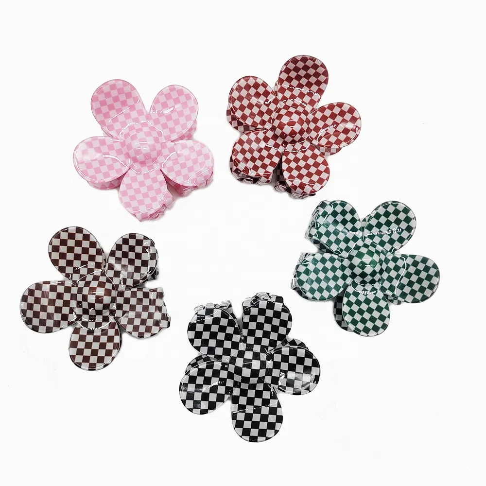 Лидер продаж, женские заколки для волос с цветами, шахматная заколка для волос, заколка для волос для девочек, аксессуары для волос