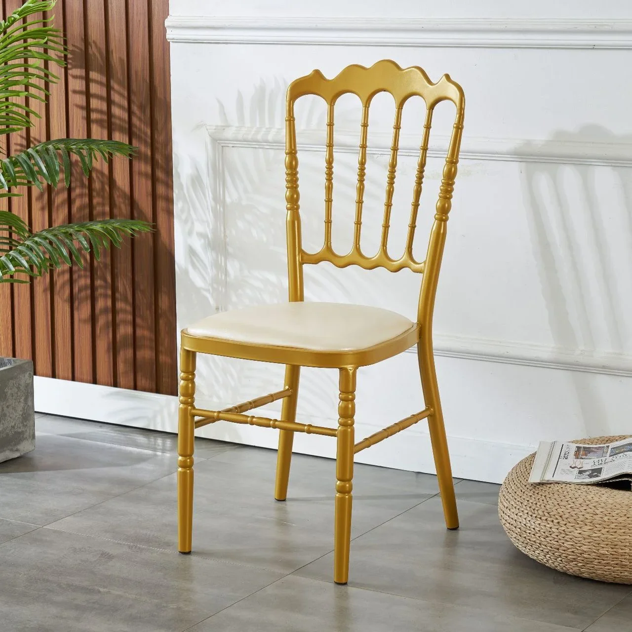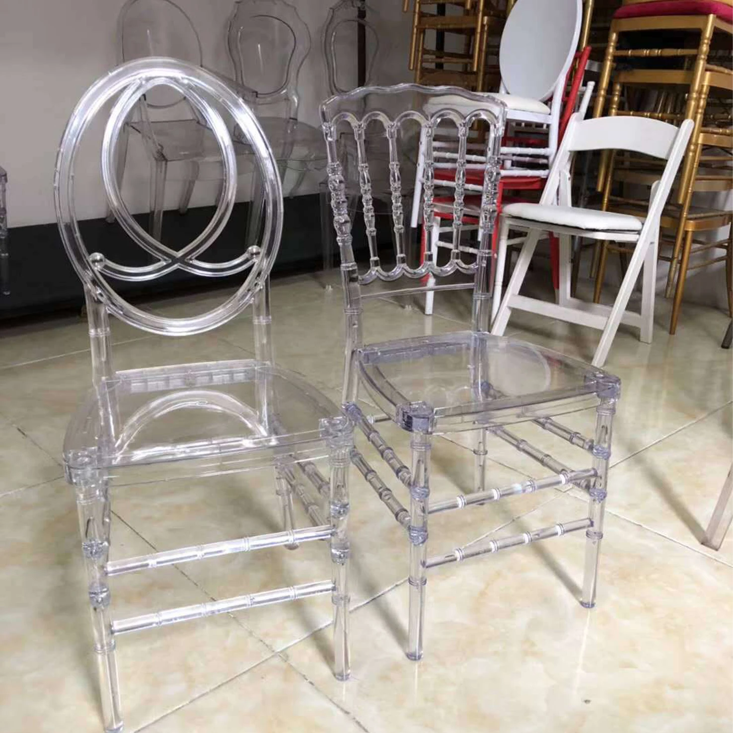 Such as chiavary chairs ,napoleon chiars ,phonix chairs ,ghost chairs ,candle holder ,table cloth ,napkin ,and so on .