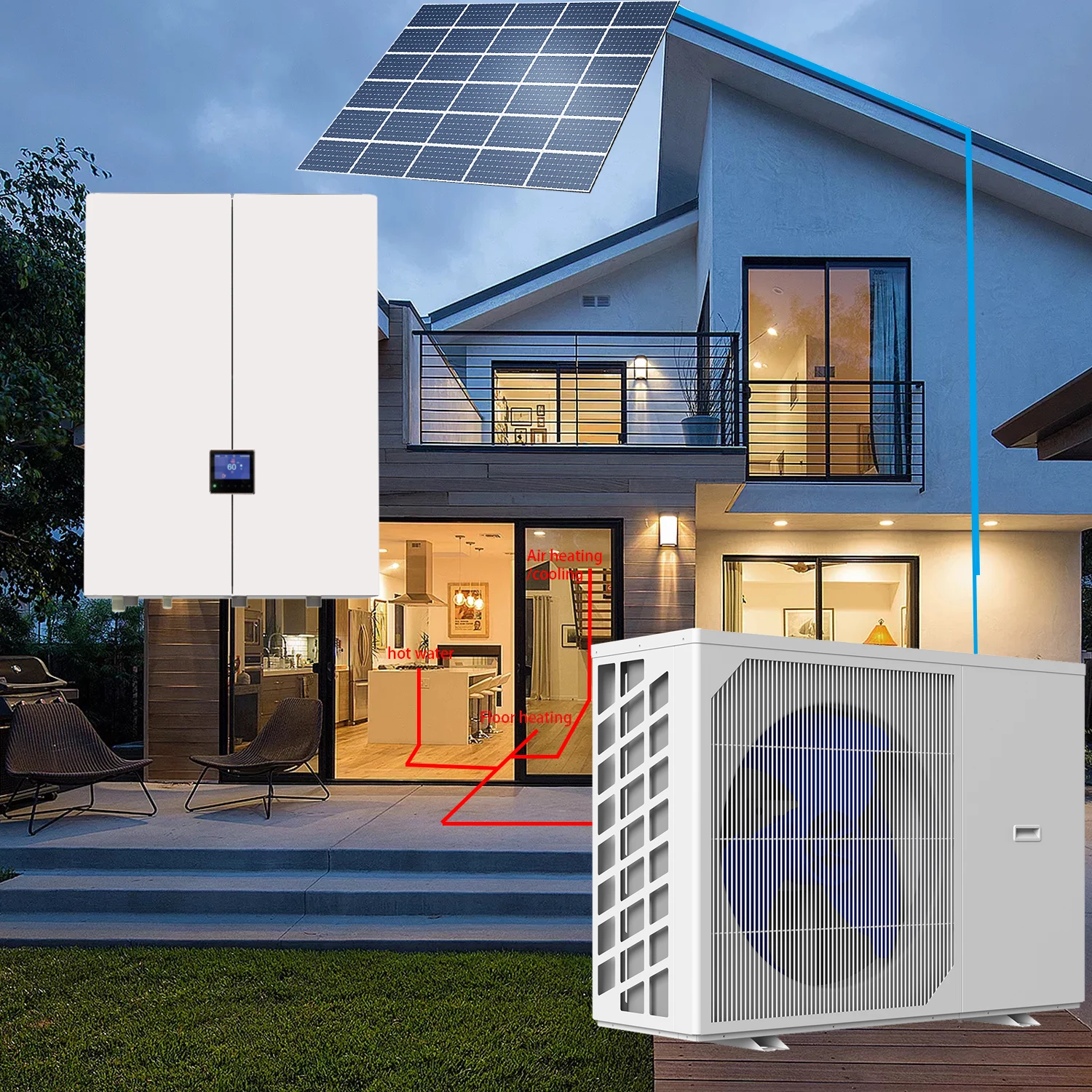 Хладагент 9 кВт 12 кВт R32, система домашнего отопления, напольный обогреватель, охлаждение и нагрев, сплит-тепловой насос