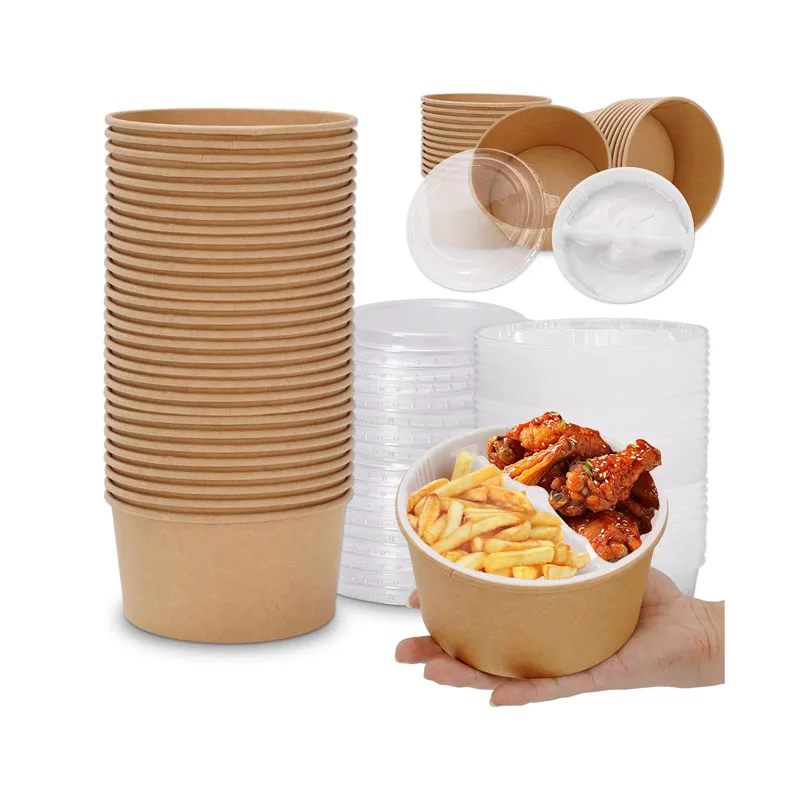 Wholesale Biodegradable Disposable Sugar Cane Paper Fiber Pulp Mould Soup Salad Bowl with Lid Sugarcane Bagasse Bowl