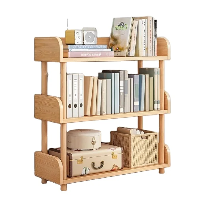3-уровневый деревянный открытый книжный шкаф-современная витрина с верхним краем и рамкой из цельного дерева для дома и офиса, шкаф для хранения